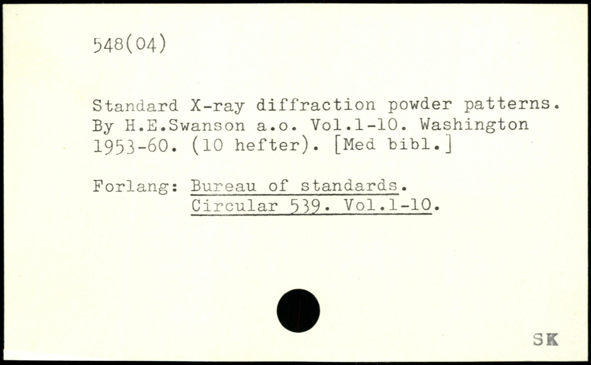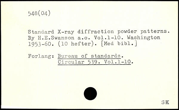 Standard X-ray diffraction powder patterns. By H.E.Swanson a.o.