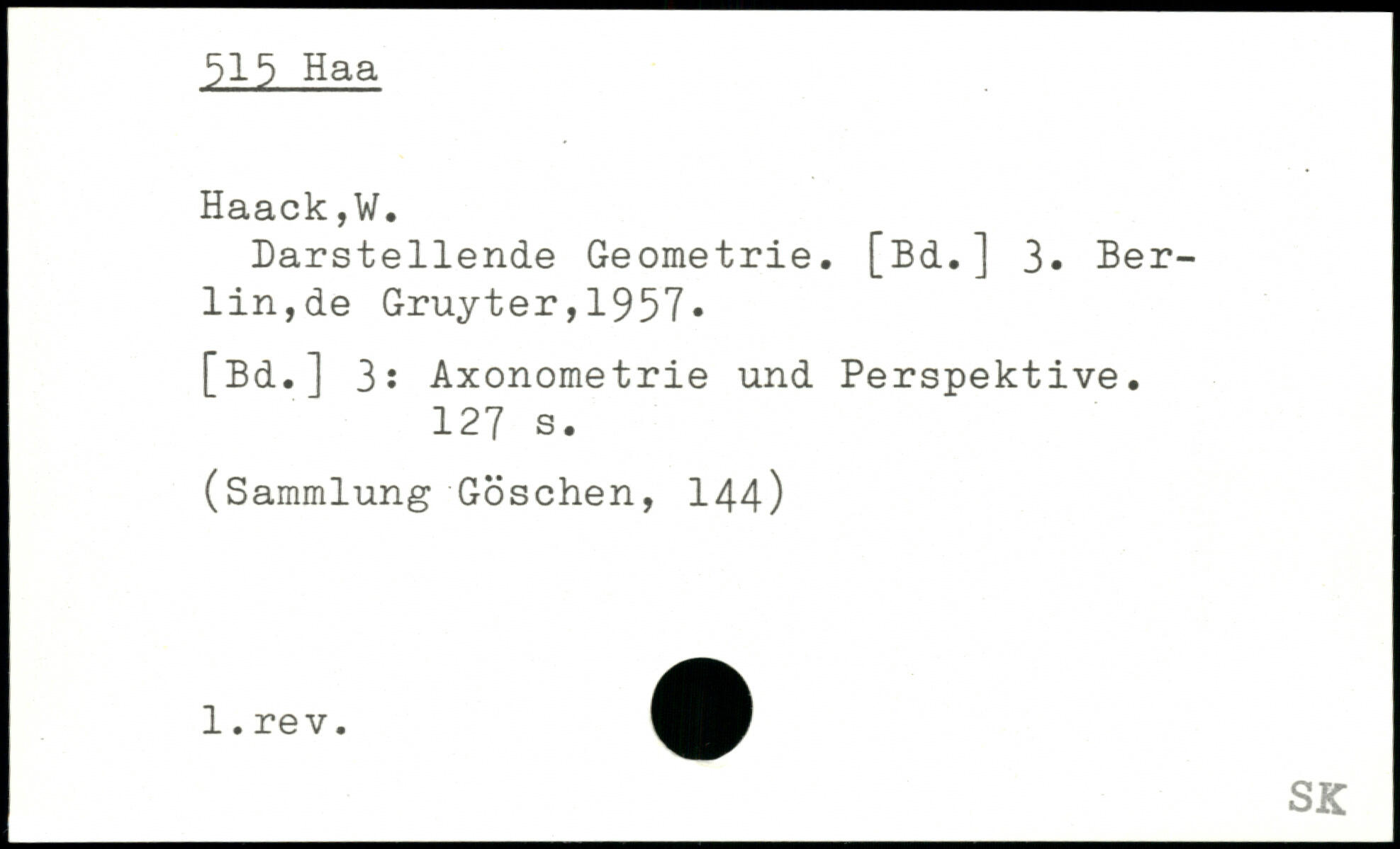 Darstellende Geometrie. [Bd.] 3. Berlin,de Gruyter,1957. [Bd.] 3: Axonometrie und Perspektive.