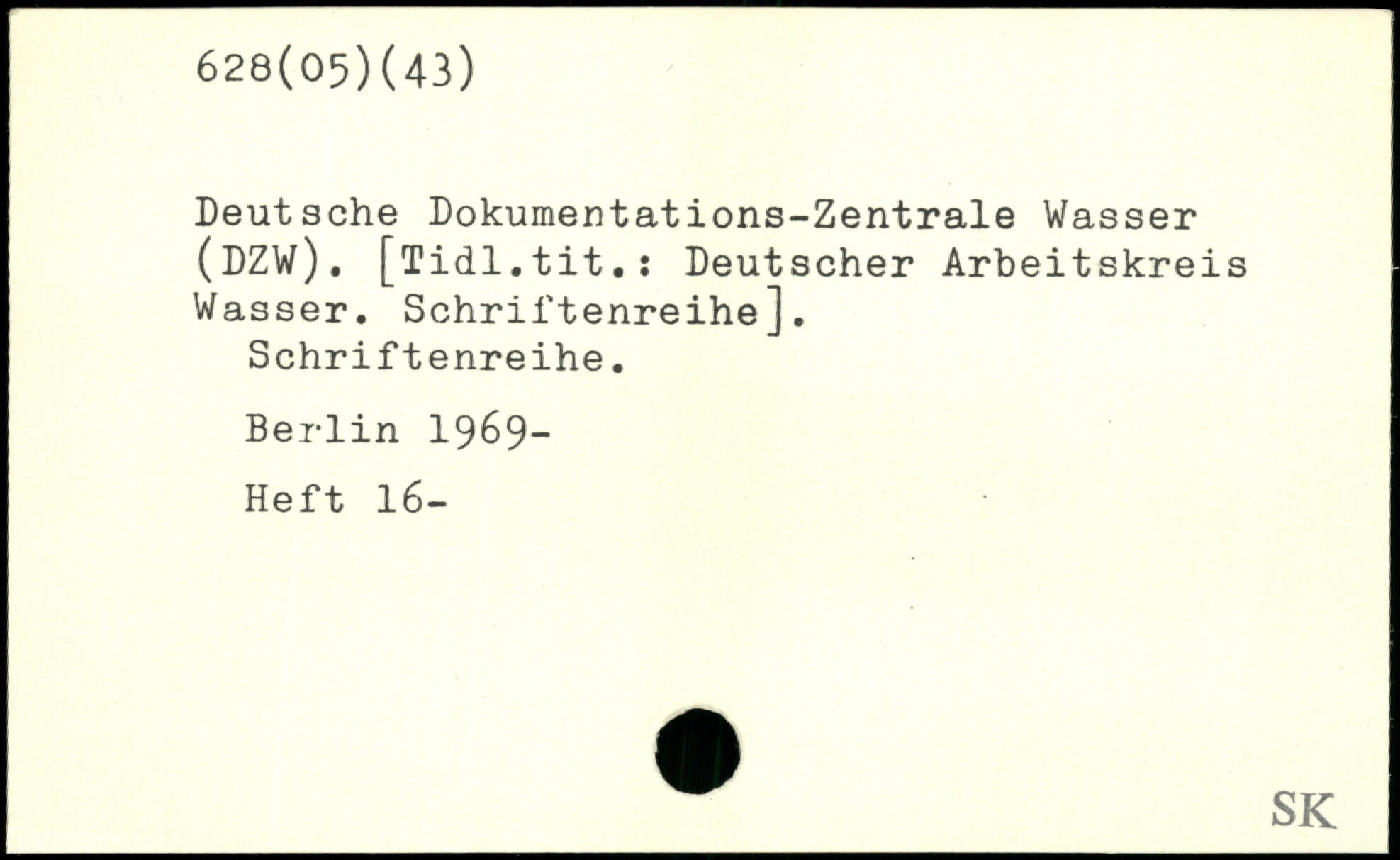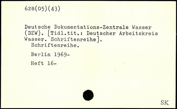 Deutsche Dokumentations-Zentrale Wasser (DZW). [Tidl.tit.: Deutscher Arbeitskreis Wasser. Schriftenreihe], Schriftenreihe.
