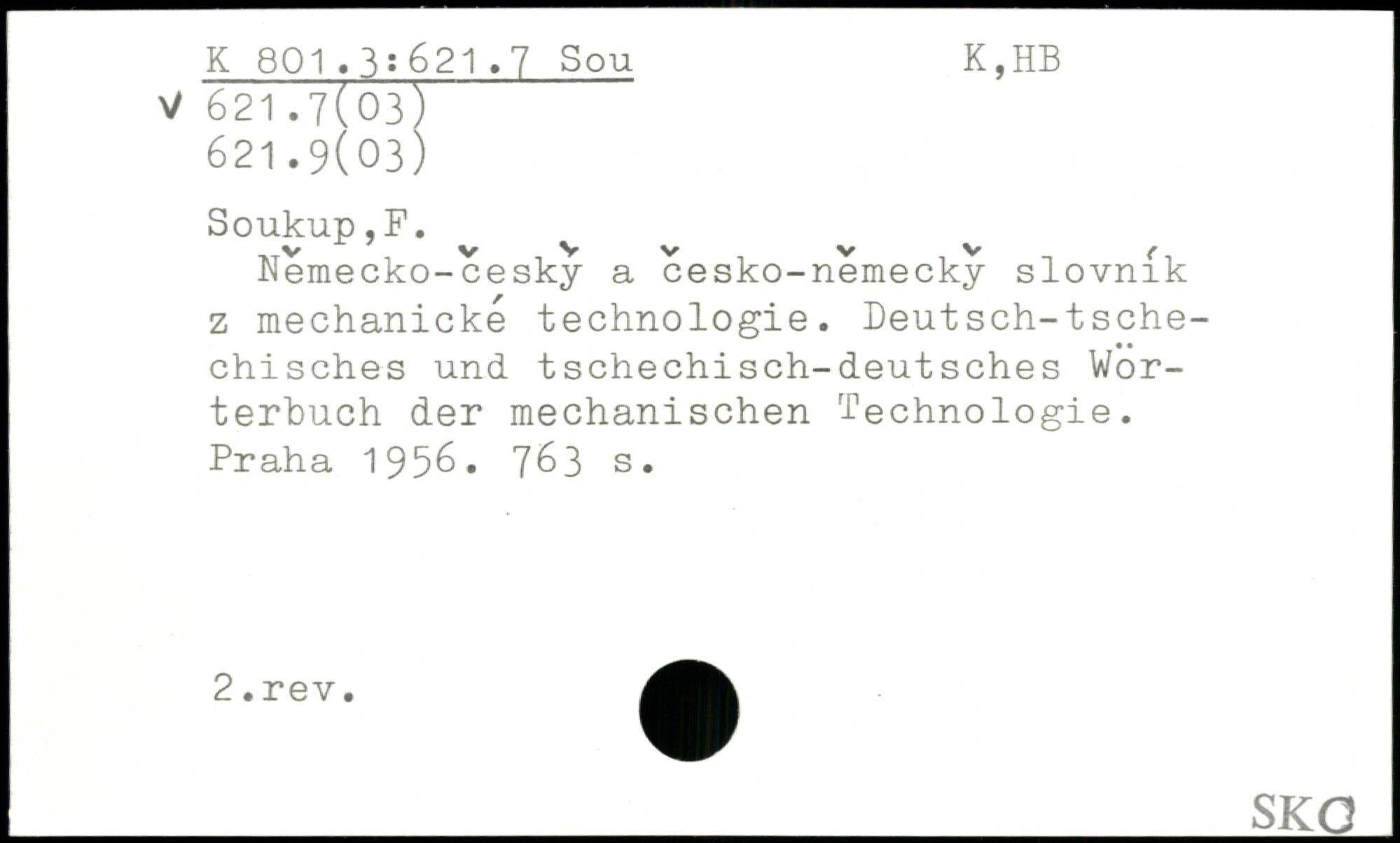 y v V V V V f Nemecko-cesky a cesko-nemecky slovnik z mechanické technologie. Deutsch-tschechisches und tschechisch-deutsches Wörterbuch der mechanischen Technologie.