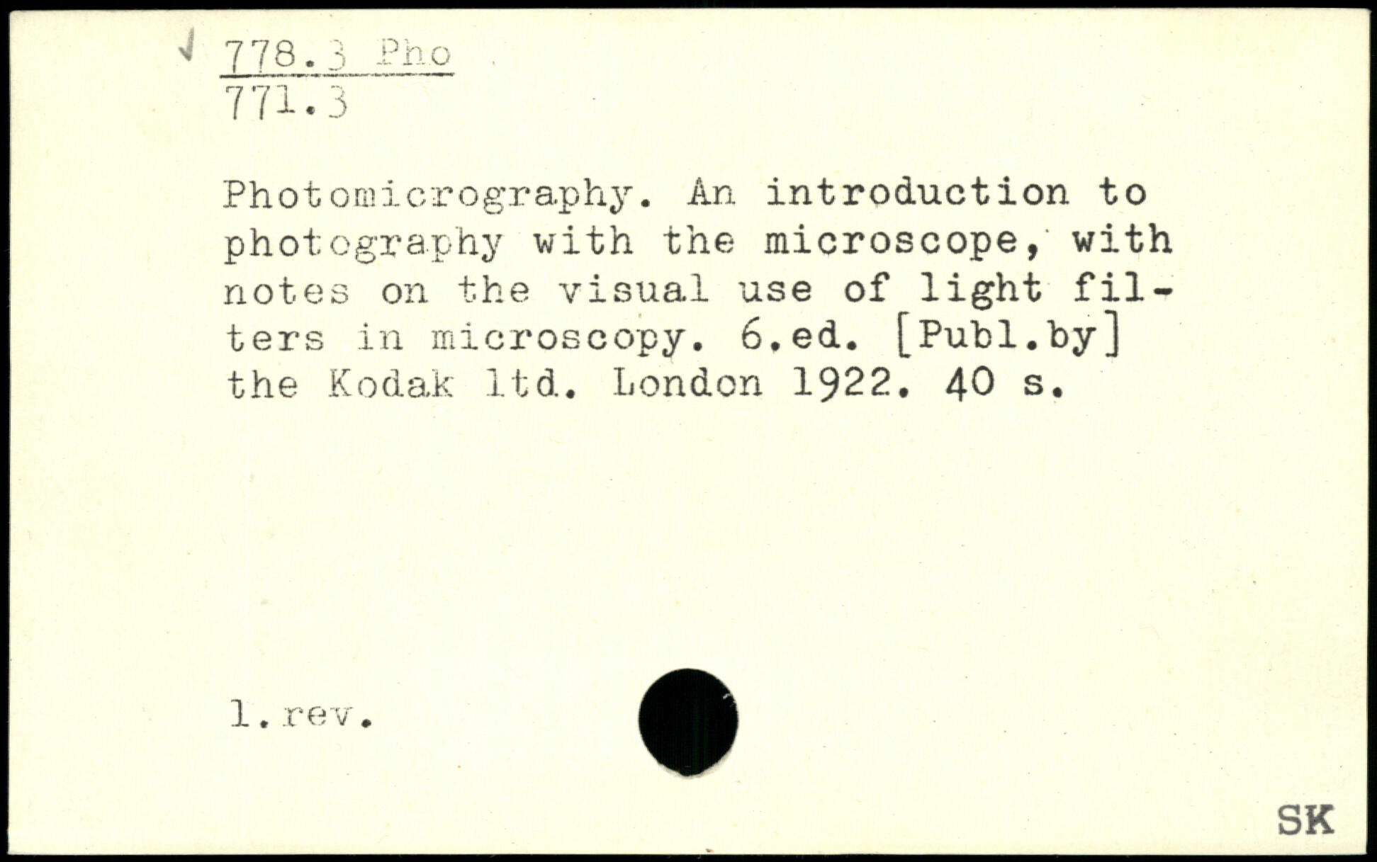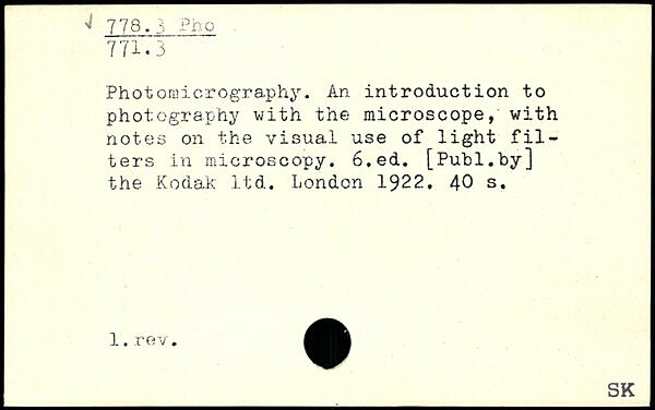 Photomicrography. An introduction to photography with the microscope, with notes on the visual use of light filters in microscopy.