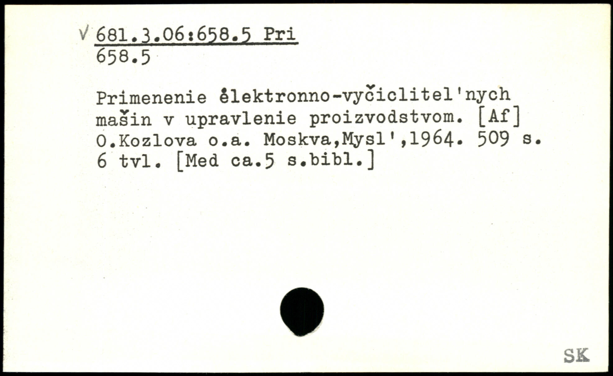 Primenenie Slektronno-vyciclitel'nych masin v upravlenie proizvodstvom. [Af] 0.Kozlova o.a. Moskva,Mysl1,1964.