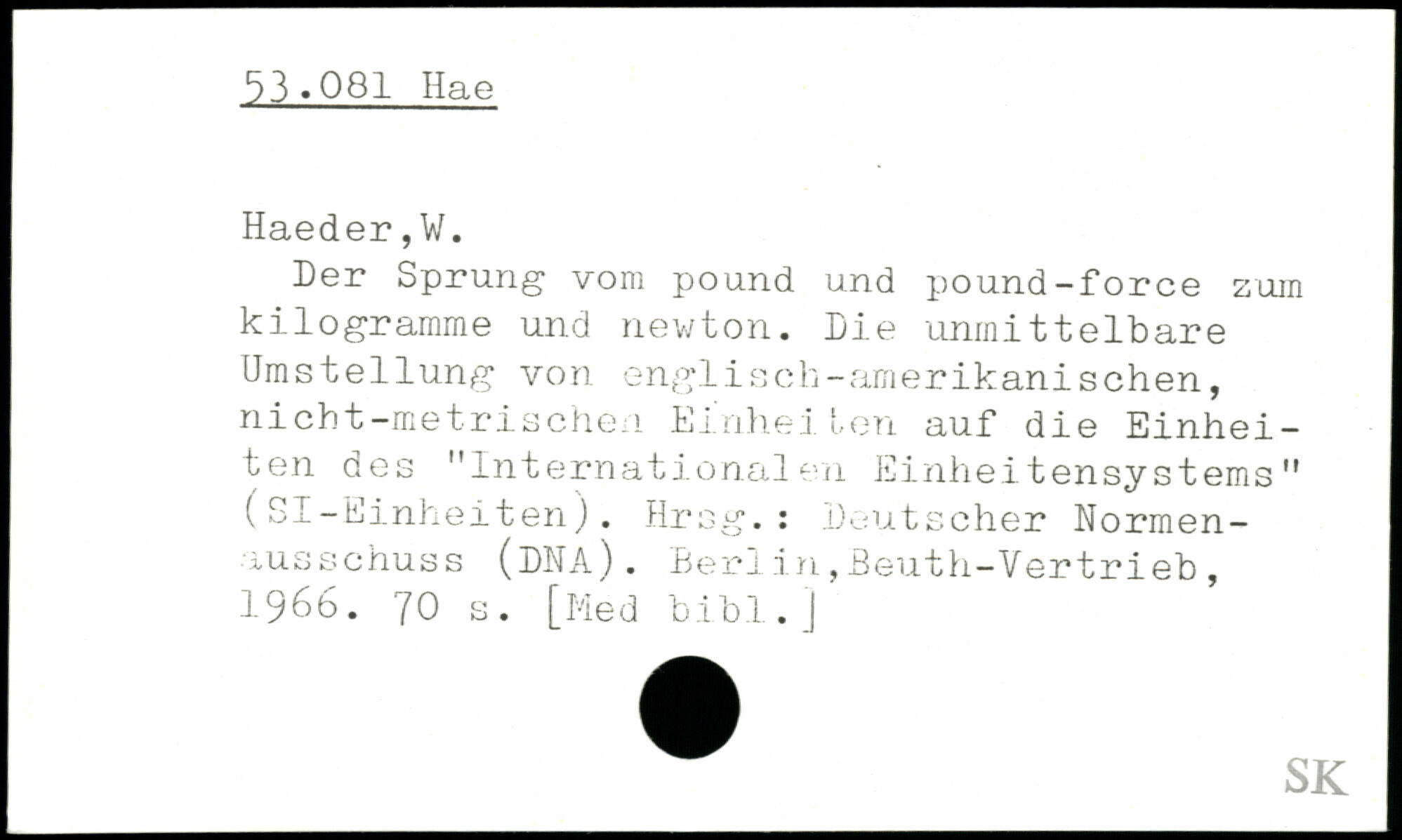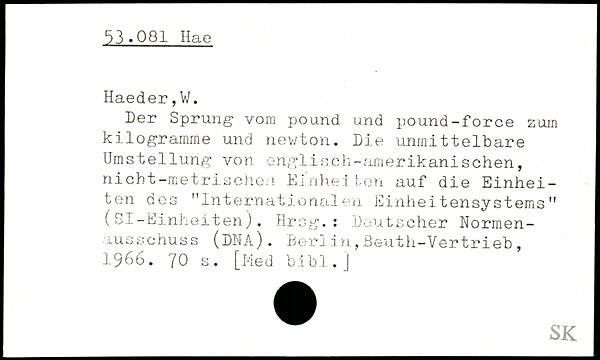Der Sprung vom pound und pound-force zum kilogramme und newton. Die unmittelbare Umstellung von englisch-amerikanischen, nicht-metrischen Einheilen auf die Einheiten des "Internationalen Einheitensystems" (SI-Einheiten). Hrsg.: Deutscher Normenausschuss (DNA).
