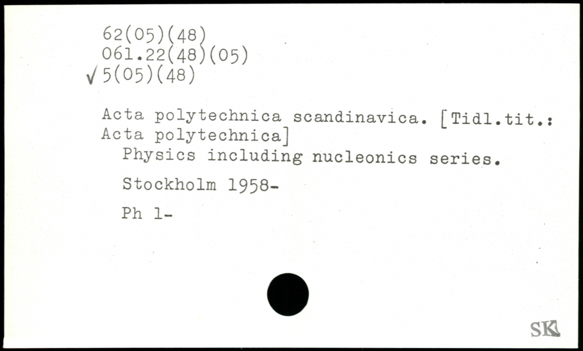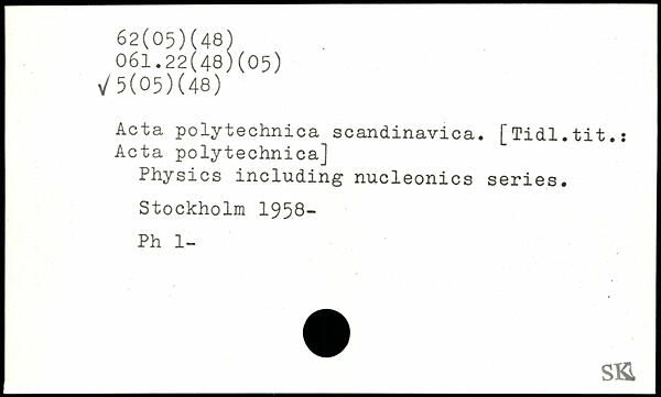 Acta polytechnics scandinavica. [Tidl.tit.: Acta polytechnica] Physics including nucleonics series.