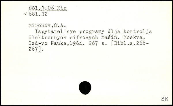 Ispytatel'nye programy dl ja kontrol ja élektronnych cifrovych masin.