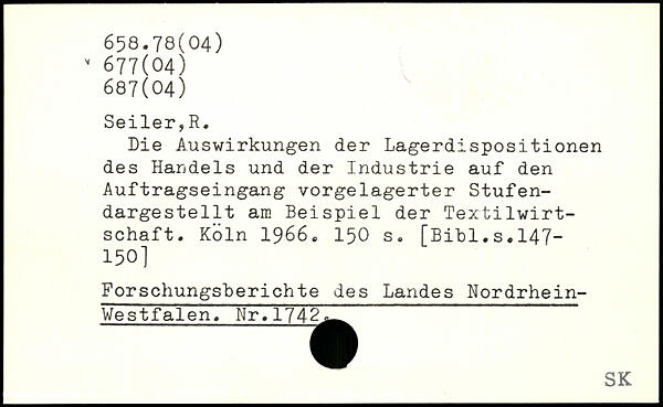 Die Auswirkungen der Lagerdispositionen des Handels und der Industrie auf den Auftragseingang vorgelagerter Stufen-dargestellt am Beispiel der Textilwirtschaft.