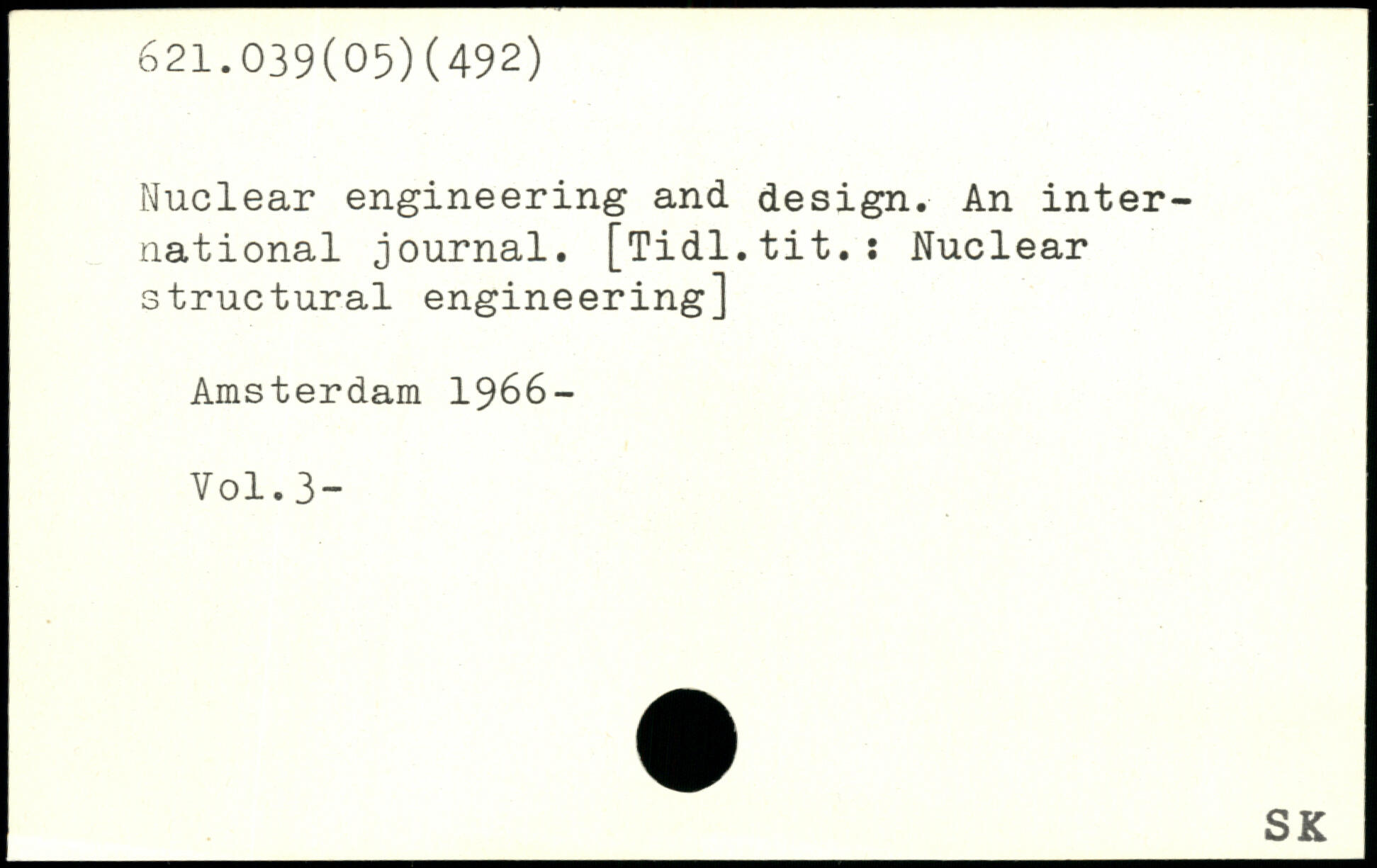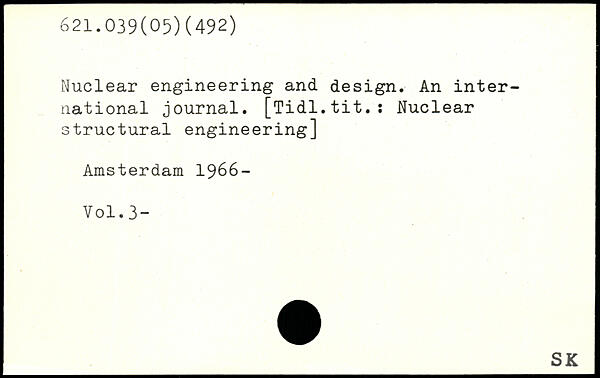 Nuclear engineering and design. An international journal. [Tidl.tit.; Nuclear structural engineering] Amsterdam 1966-