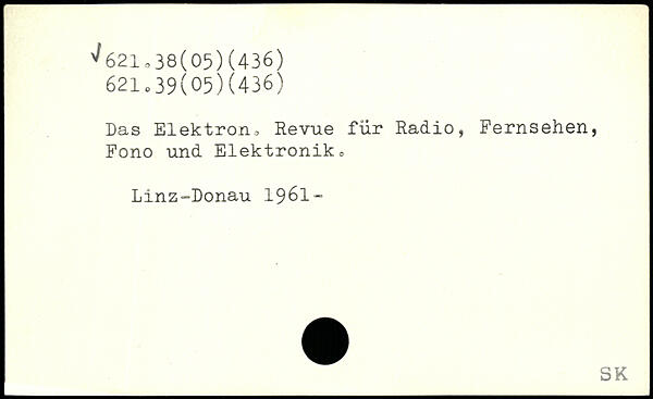 Das Elektron.;, Revue für Radio, Fernsehen, Fono und Elektronika Linz-Donau 1961-