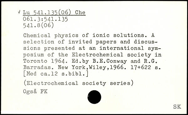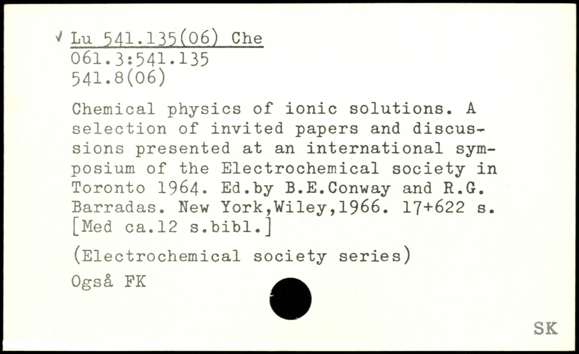 Chemical physics of ionic solutions. A selection of invited papers and discussions presented at an international symposium of the Electrochemical society in Toronto 1964. Ed.by B.E.Conway and R.G. Barradas.