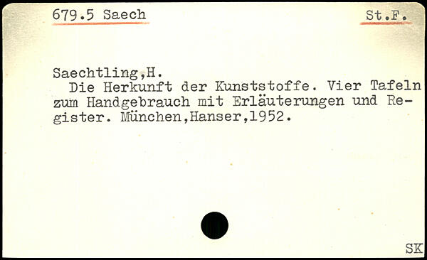 Die Herkunft der Kunststoffe. Vier Tafeln zum Handgebrauch mit Erläuterungen und Register.