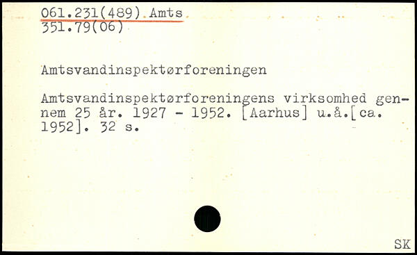 Amtsvandinspektørforeningens virksomhed gennem 25 år, 1927 - 1952.