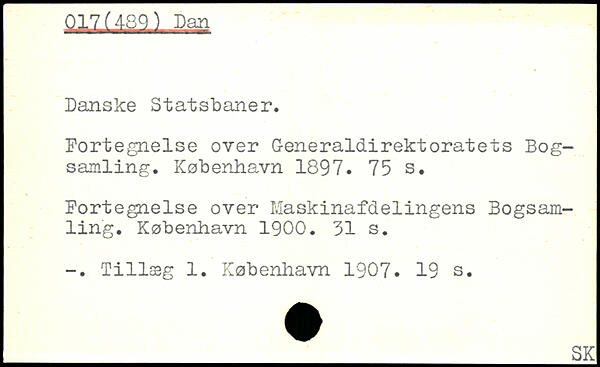 Fortegnelse over Generaldirektoratets Bogsamling.