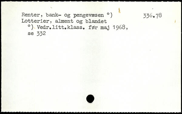 Renter, bank- og pengevæsen .) 336.78 Lotterier, alment og blandet .) Vedr.litt.klass. før maj 1968, se 332