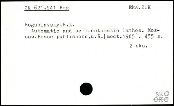 Automatic and semi-automatic lathes. Moscow,Peace publishers,u.a.[modt.1965].