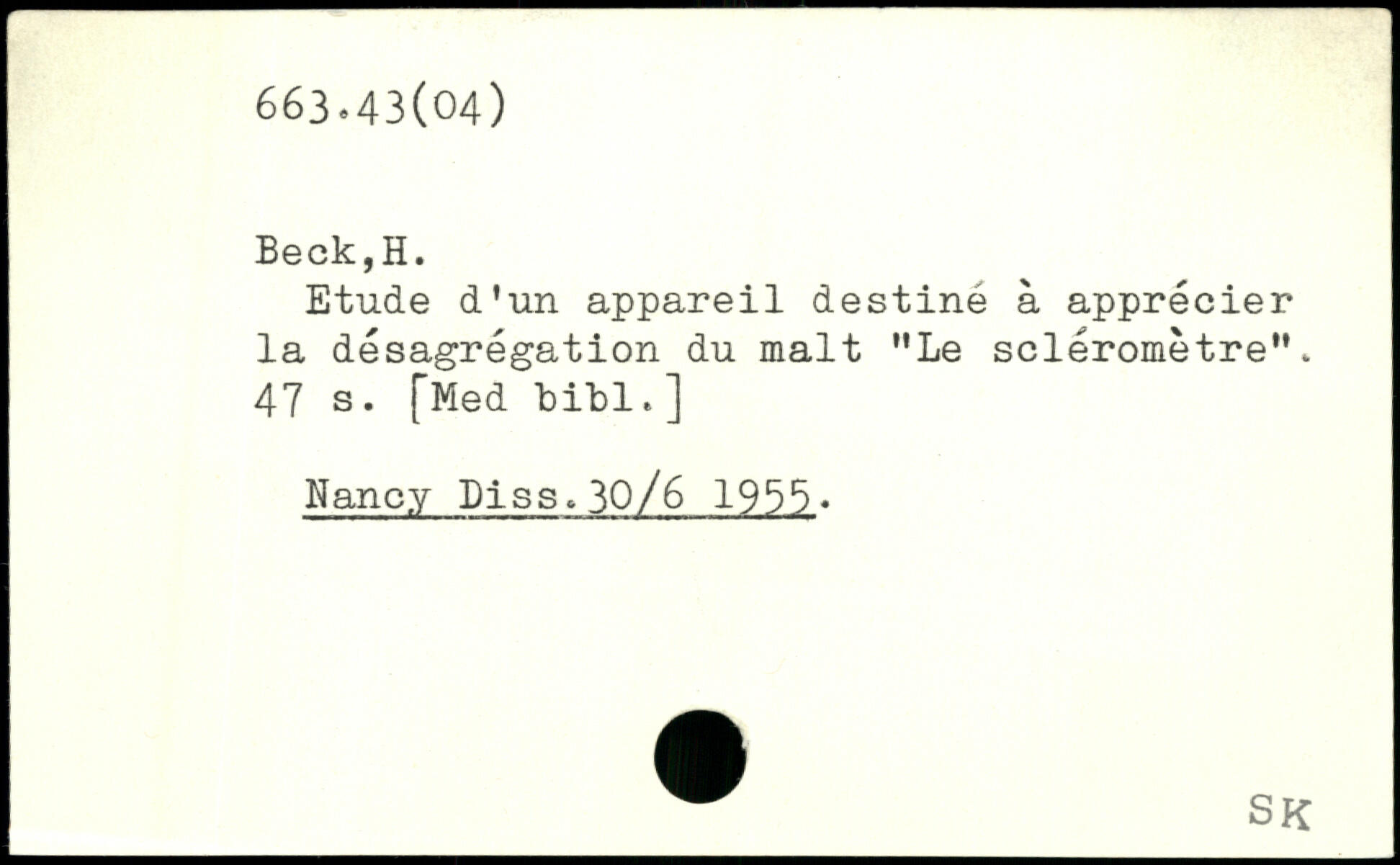 Etude d'un appareil destiné à apprécier la désagrégation du malt "Le scléromètre".