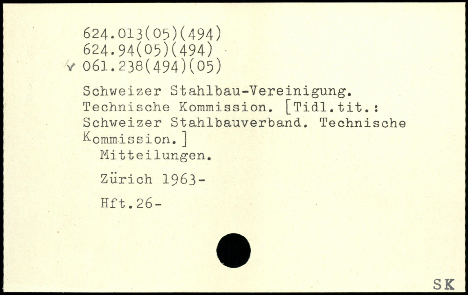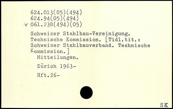 Schweizer Stahlbau-Vereinigung. Technische Kommission. [Tidl.tit.: Schweizer Stahlhauverband. Technische Kommission.] Mitteilungen. Zürich 1963- Hft.26-