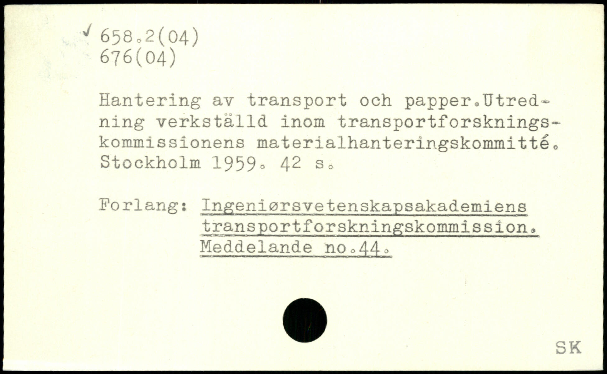 Hantering av transport och papper,Utredning verkställd inom transportforskningskommissionens materialhanteringskommitte