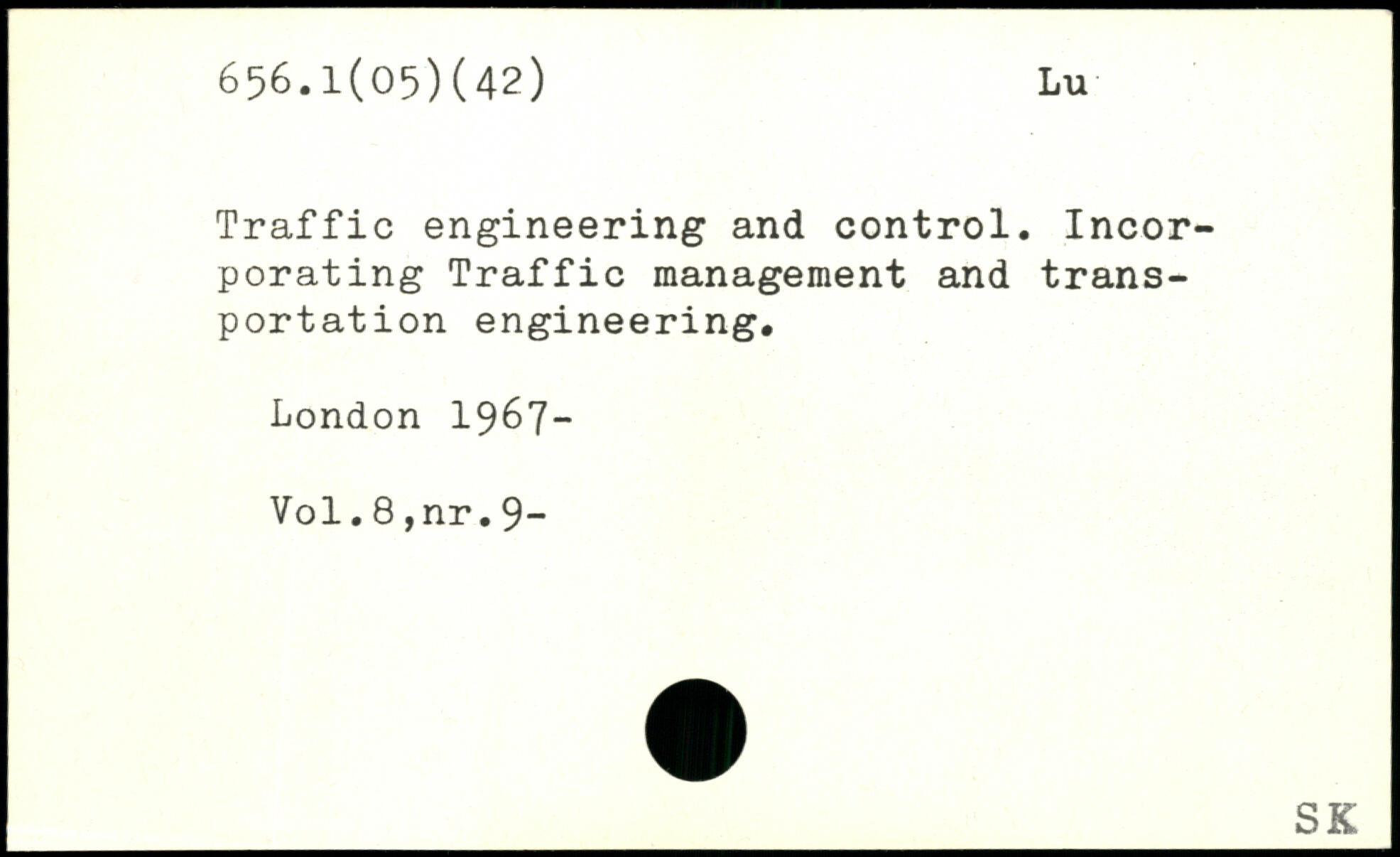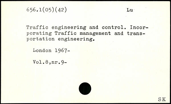 Traffic engineering and control. Incorporating Traffic management and transportation engineering.