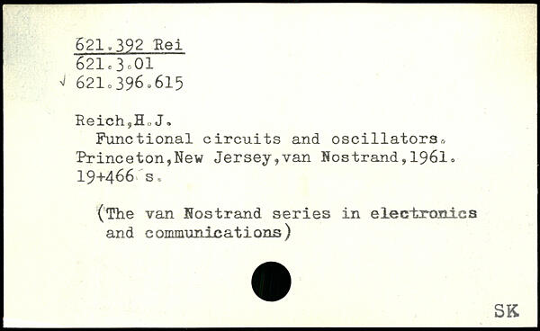 Functional circuits and oscillators., Princeton,New Jersey,van Nostrand,1961.