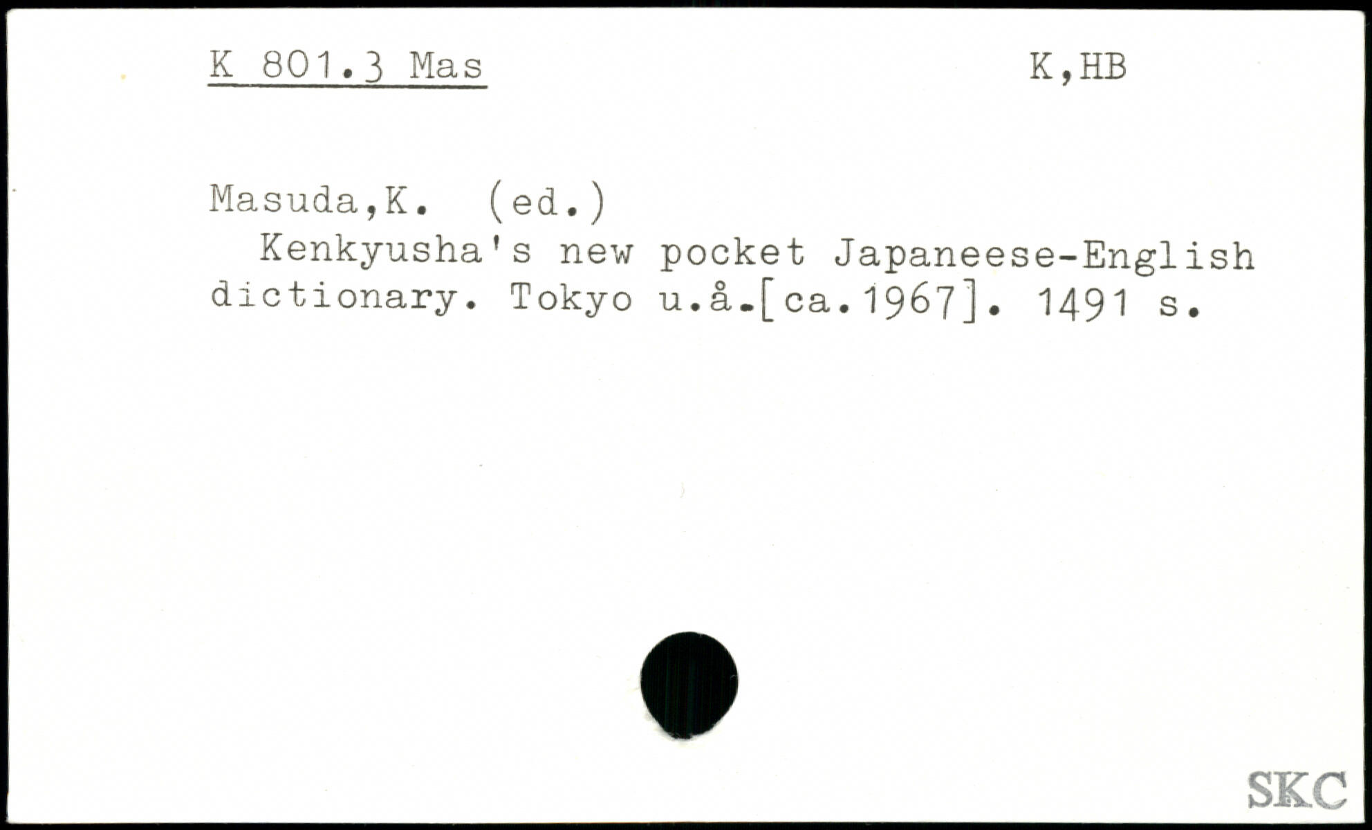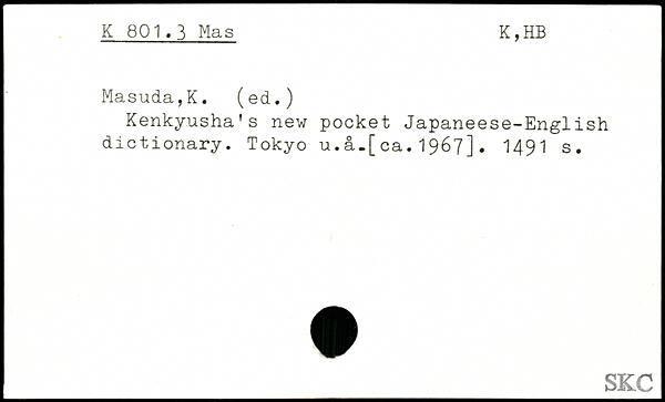 Kenkyusha's new pocket Japaneese-English dictionary. Tokyo u.a.[ca.1967].