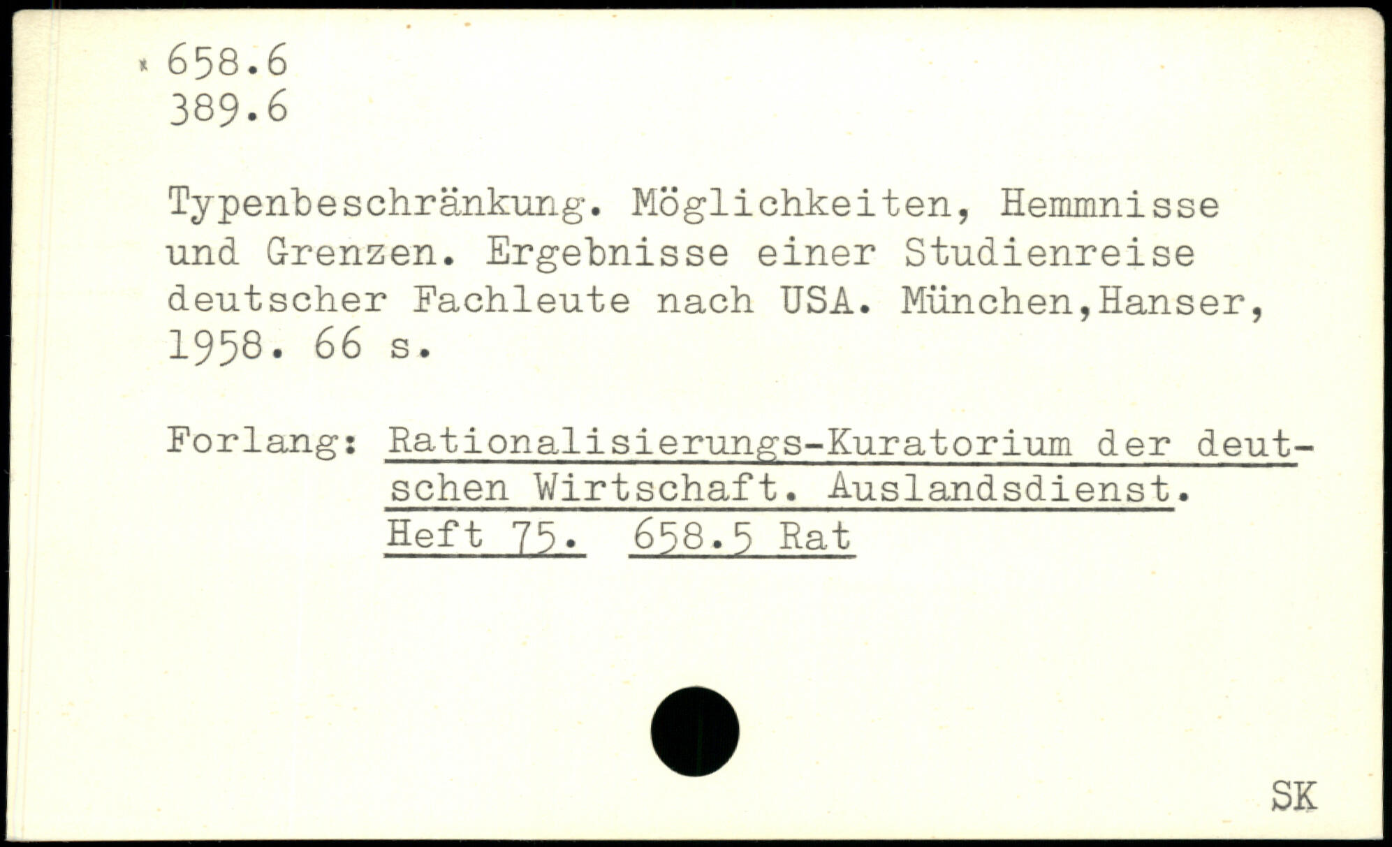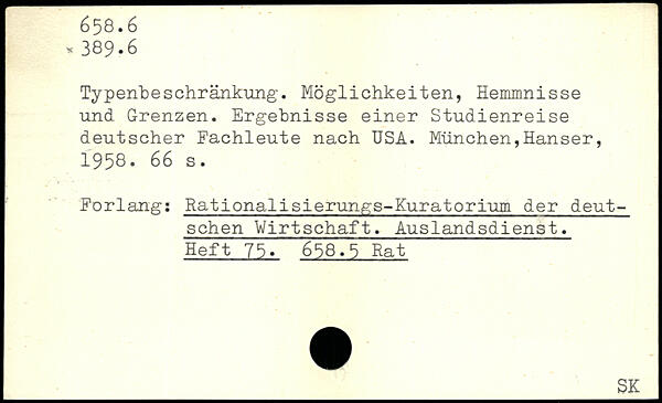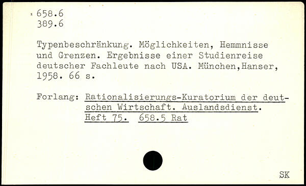 Typenbeschränkung-. Möglichkeiten, Hemmnisse und Grenzen. Ergebnisse einer Studienreise deutscher Fachleute nach USA.