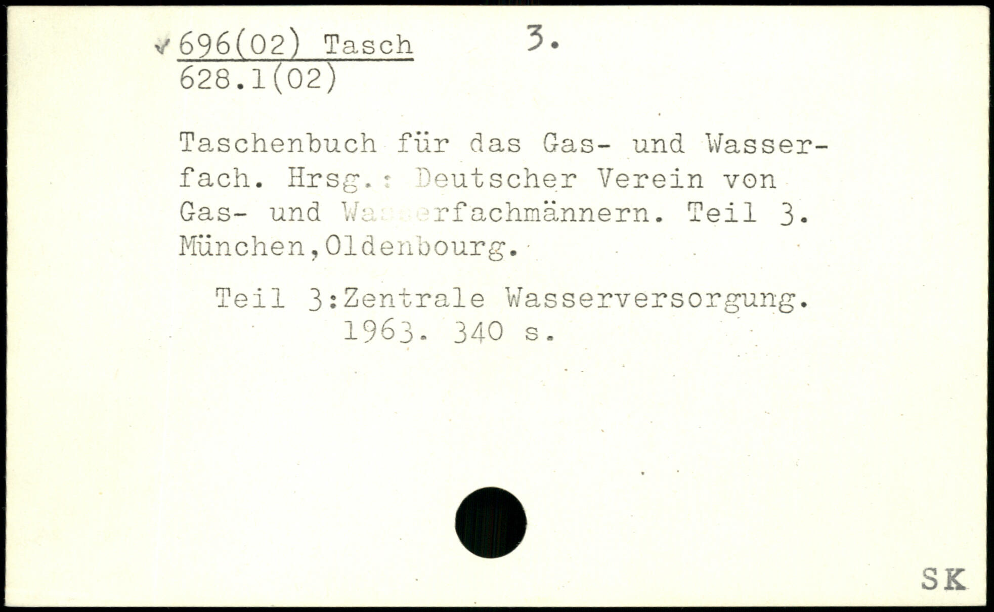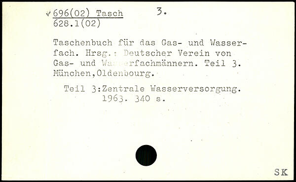Taschenbuch für das Gas- und Wasserfach. Hrsg-, t Deutscher Verein von Gas- und Wo rfachmännern. Teil 3- München,Oldenbourg. Teil 3:Zentrale Wasserversorgung. 1963.