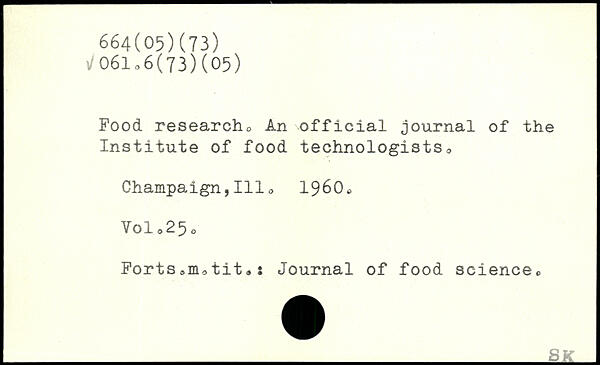 Food research,, An official journal of the Institute of food technologists, Champaign,111, 1960. Yo1025o Fortsamotit8: Journal of food science. _a ft