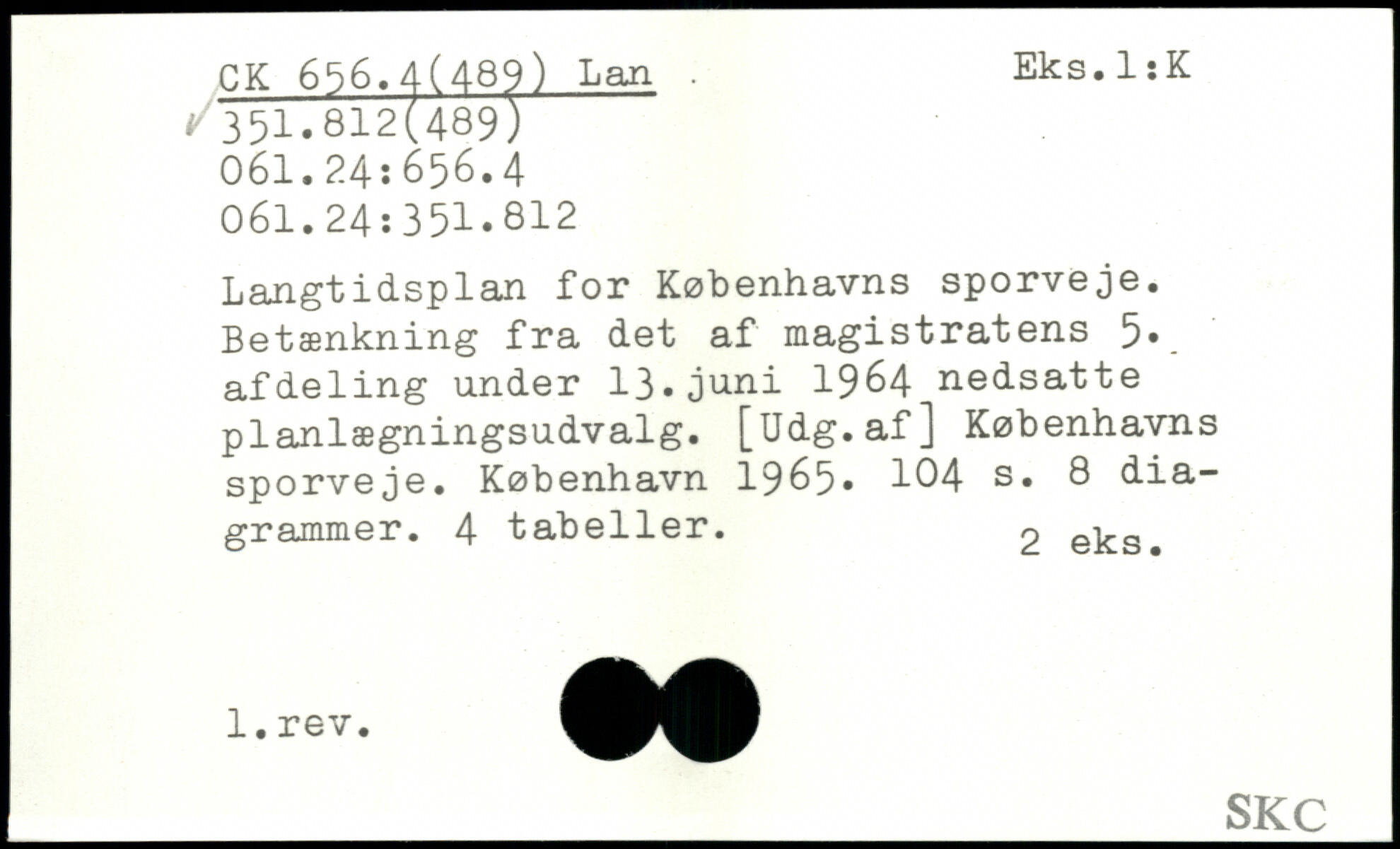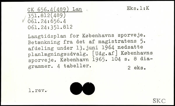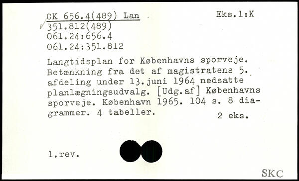 Langtidsplan for Københavns sporveje. Betænkning fra det af magistratens 5, afdeling under 13.juni 1964 nedsatte planlægningsudvalg. [Udg.af] Københavns sporveje.