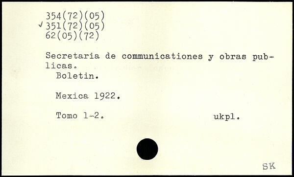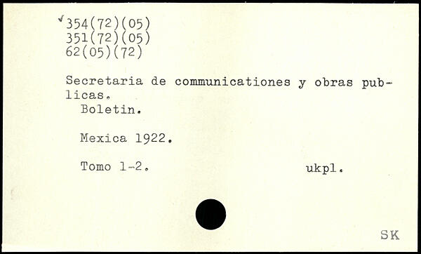 Secretaria de communicationes y obras pub- licas. Boletin. Mexica 1922. Tomo 1-2. ukpl.