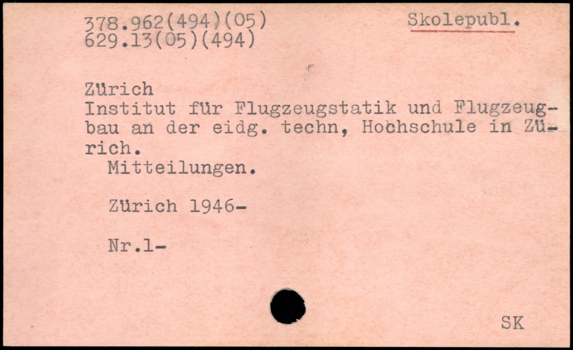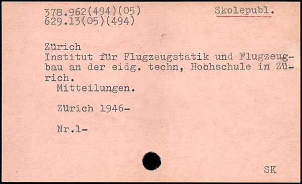 Institut für Plugzeugstatik und Flugzeugbau an der eidg. teehn, Hochschule in Zürich. Mitteilungen. Zürich 1946-Nr.l-