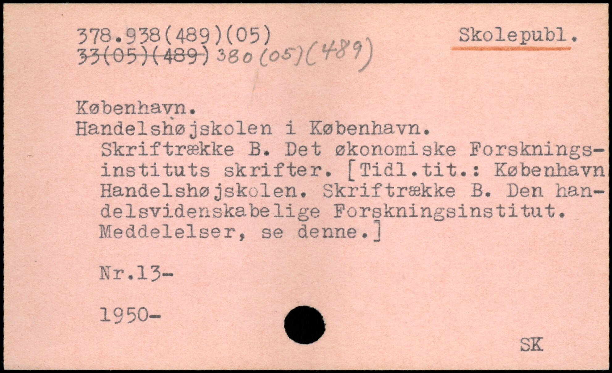 Handelshøjskolen i København. Skriftrække B. Det økonomiske Forskningsinstituts skrifter. [Tidl.tit.s København Handelshøjskolen. Skriftrække B. Den handelsvidenskabelige Forskningsinstitut. Meddelelser, se denne.] Nr.13- 1950- A