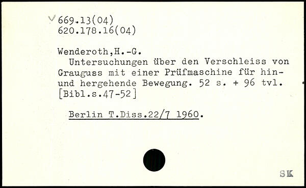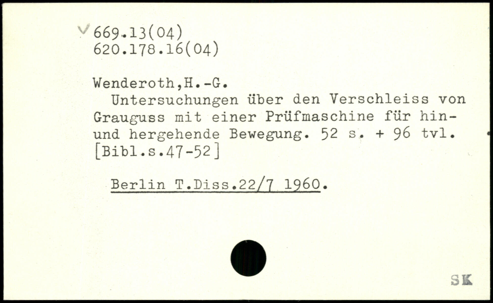 Untersuchungen über den Yerschleiss von Grauguss mit einer Prüfmaschine für hin-und hergehende Bewegung.