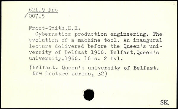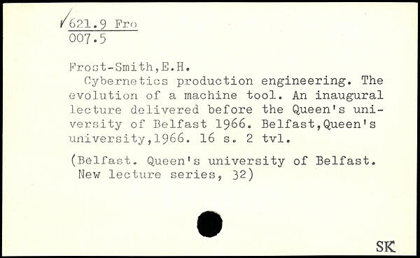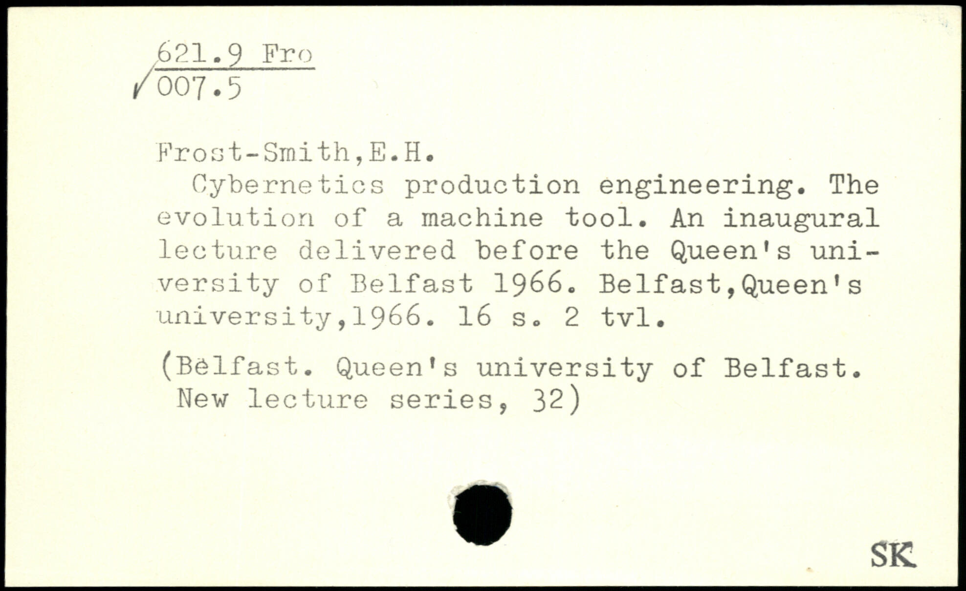 Cybernetics production engineering. The evolution of a machine tool. An inaugural lecture delivered before the Queen's university of