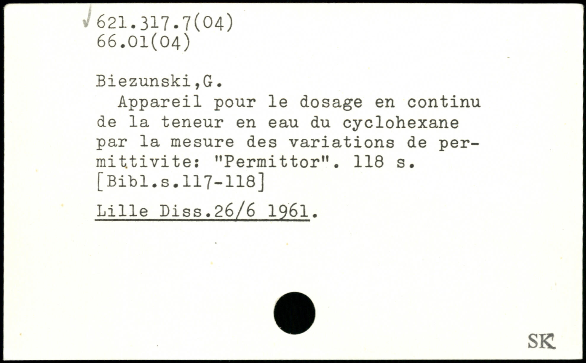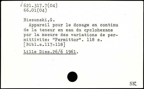 Appareil pour le dosage en continu de la teneur en eau du cyclohexane par la mesure des variations de permittivité: "Permittor,,.