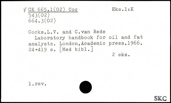 Cocks, L.V. and. C.van Rede Laboratory handbook for oil and fat analysts.