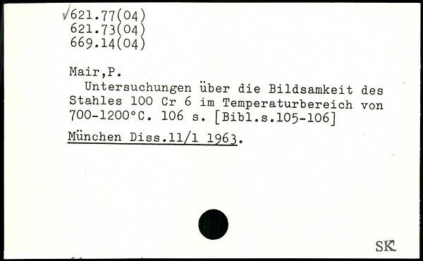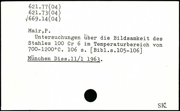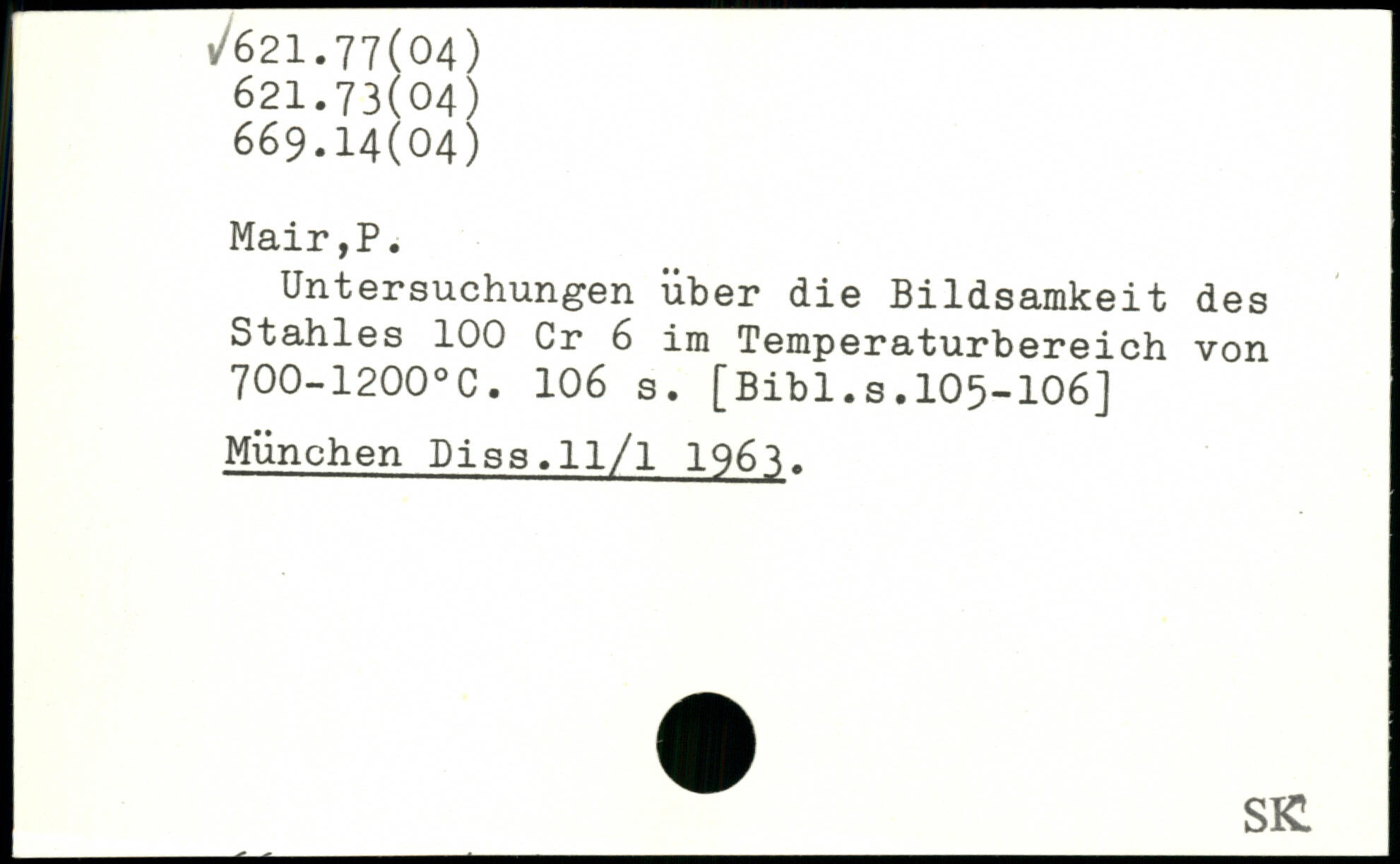 Untersuchungen über die Bildsamkeit des Stahles 100 Cr 6 im Temperaturbereich von 700-1200.C.