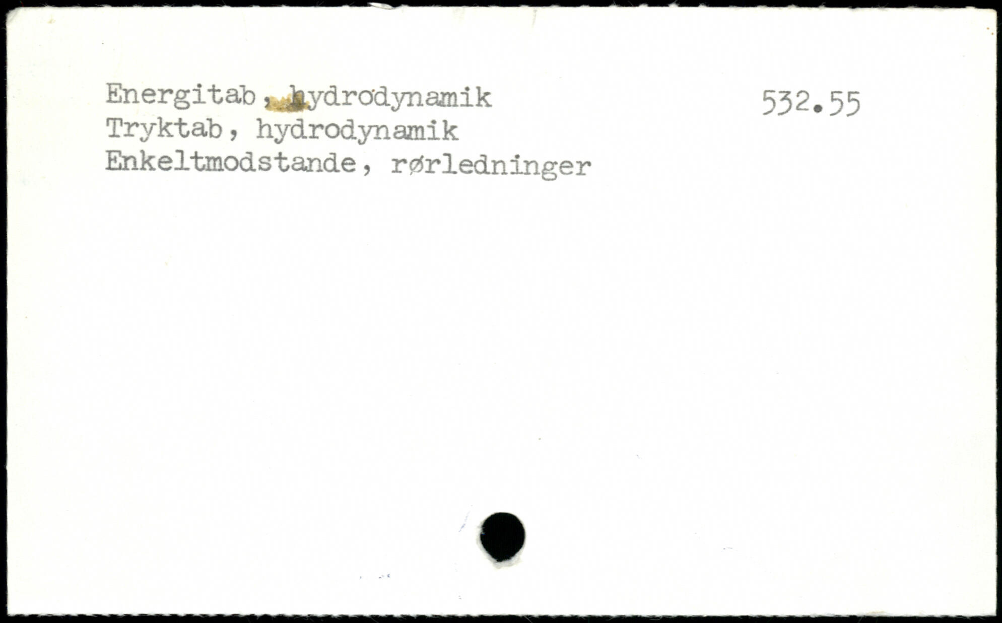 Energitab vj^ydrodynamik 532.55 Tryktab, hydrodynamik Enkeltmodstande, rørledninger