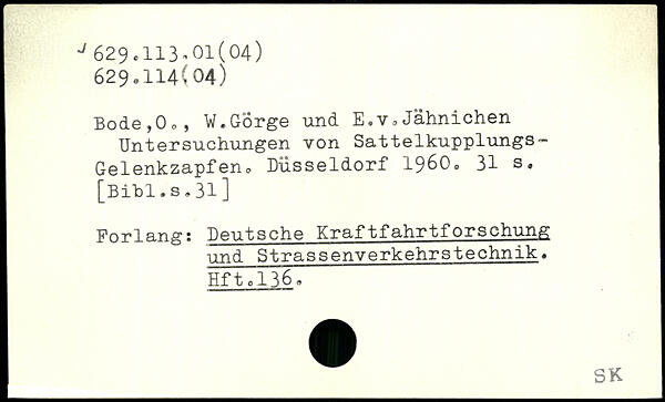 Bode,0o, W.Gorge und E.t,Jähnichen Untersuchungen von Sattelkupplungs- j Gelenkzapfen, Düsseldorf 1960