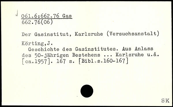 Der Gasinstitut, Karlsruhe (Versuchsanstalt) Körting,J. Geschichte des Gasinstitutes. Aus Anlass des 50-jährigen Bestehens ... Karlsruhe u.ä. [ca.1957].