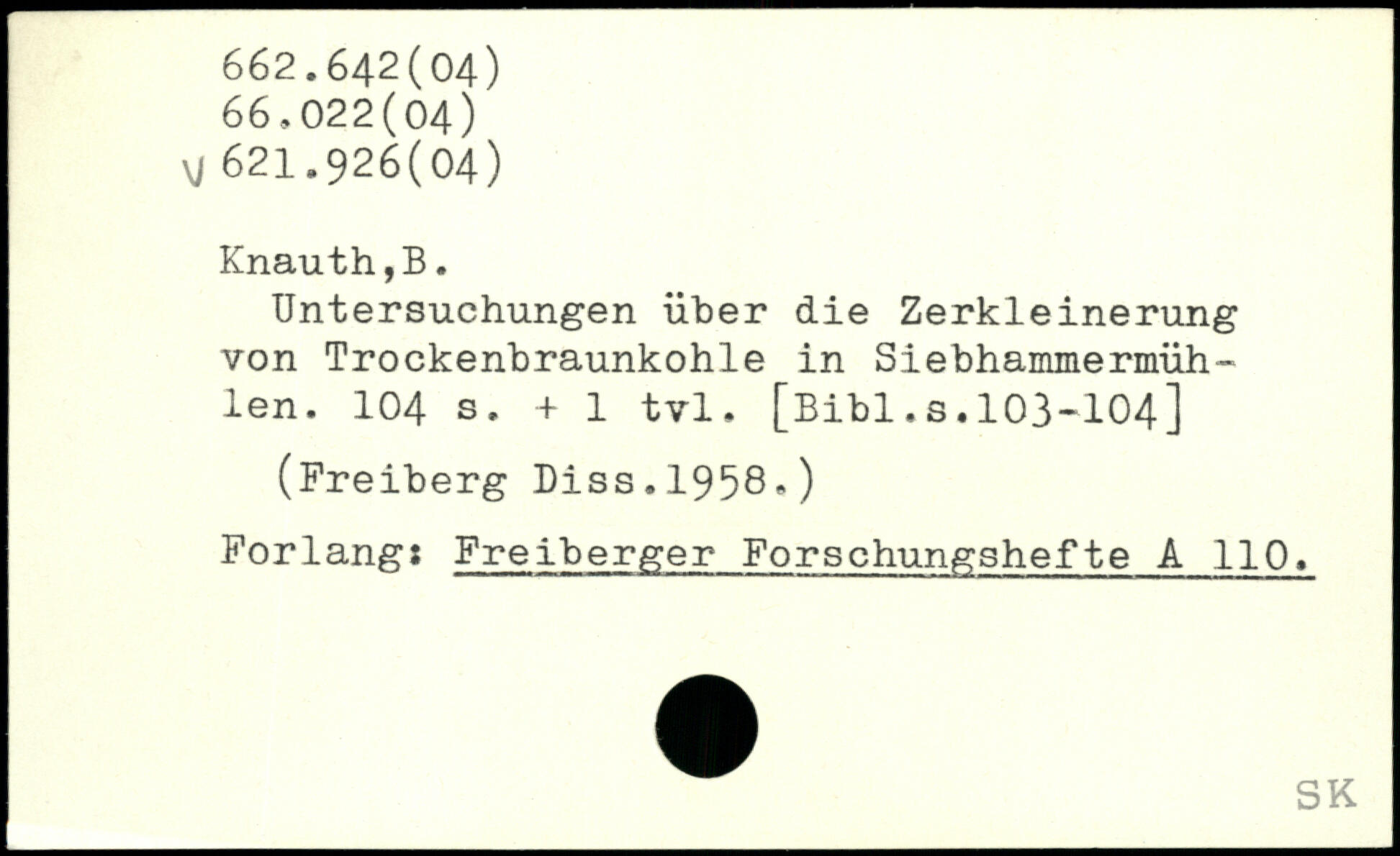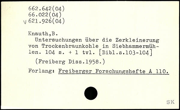 Untersuchungen über die Zerkleinerung von Trockenbraunkohle in Siebhammermühlen.