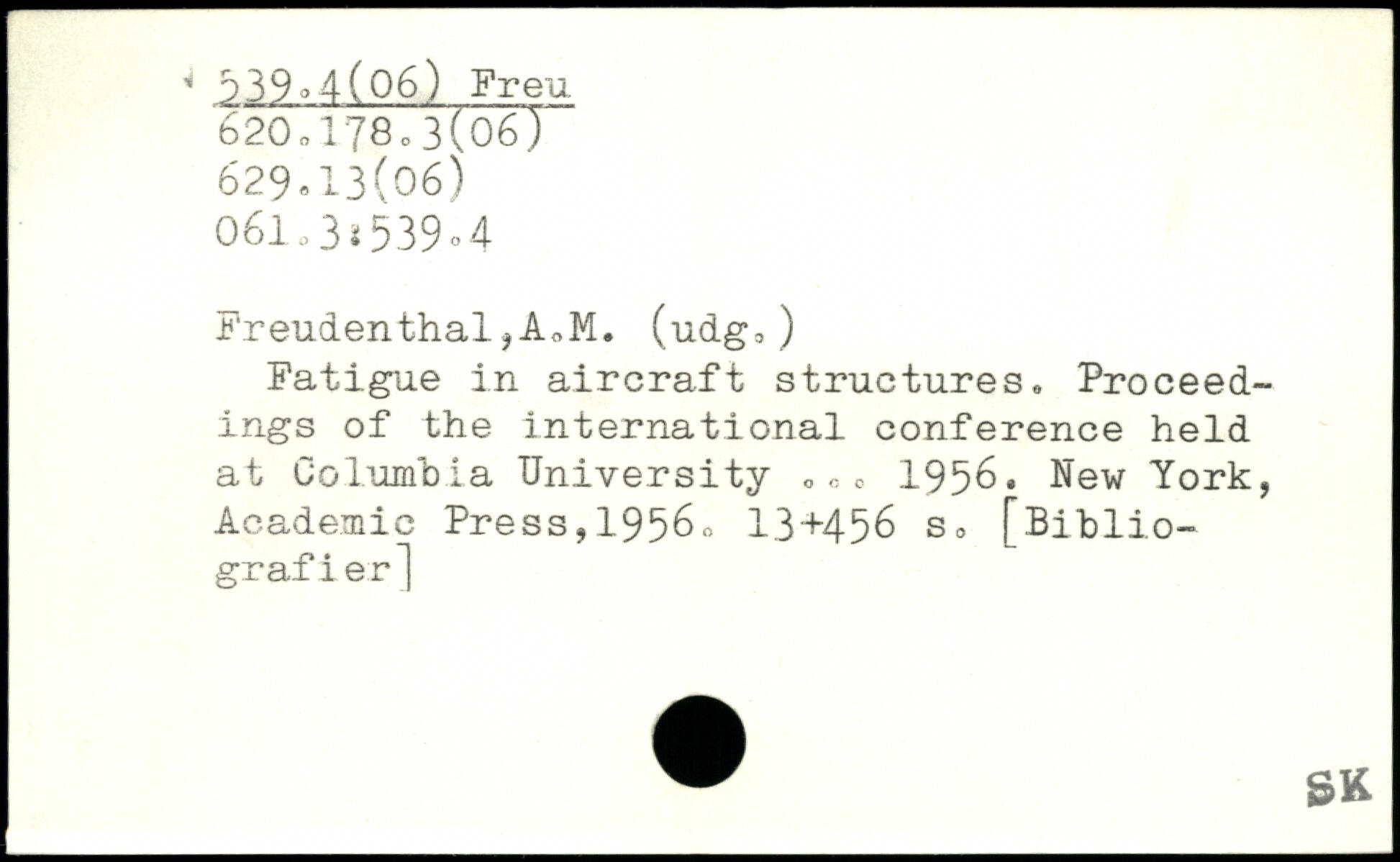Freudenthaï,A,M. (udg,) Fatigue in aircraft structures. Proceedings of the international conference held at Columbia University 0,c 1956.