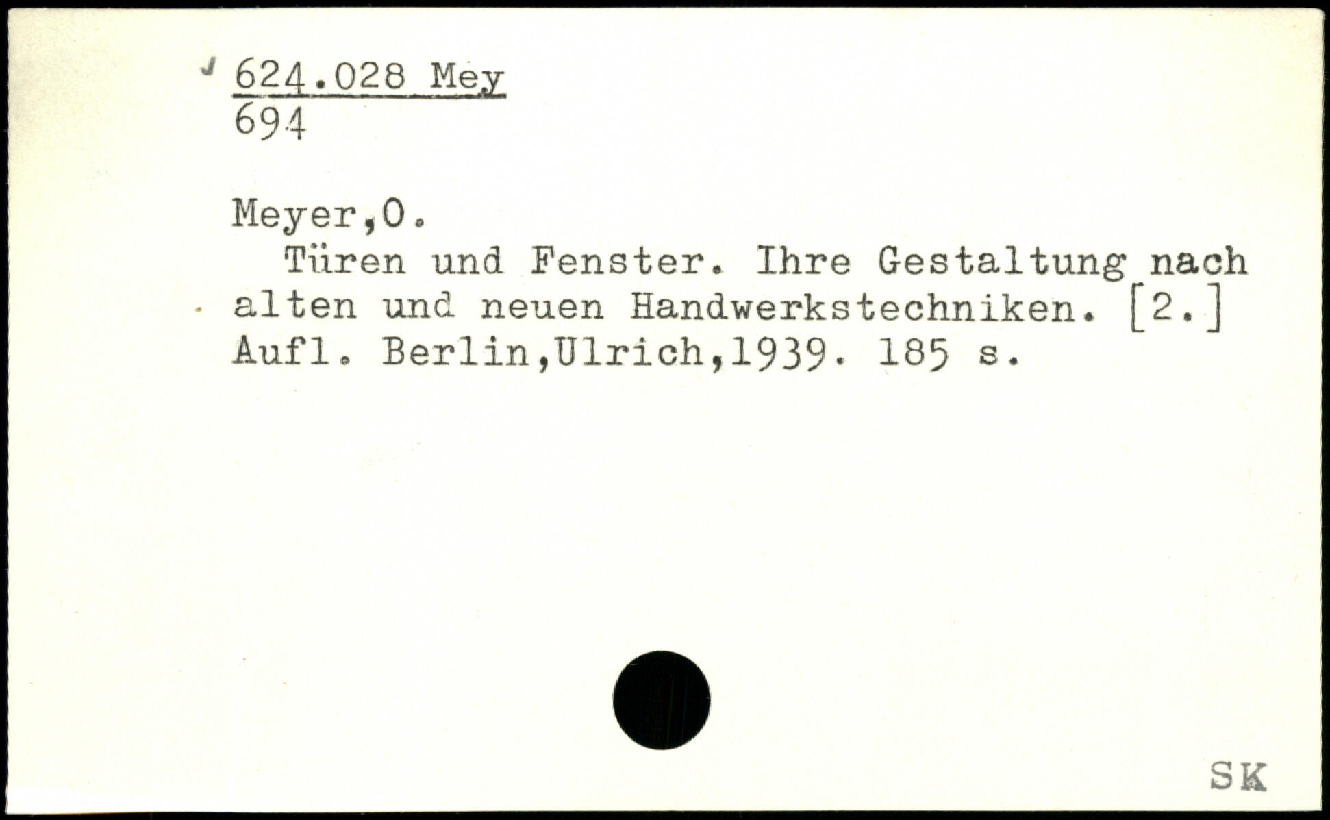 Türen und Fenster. Ihre Gestaltung nach. alten und neuen Handwerkstechniken. [2.] Aufl.