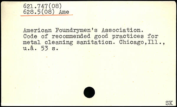 American Foundrymen. s Association. Code of recommended good practices for metal cleaning sanitation. Chicago,111., u.&.