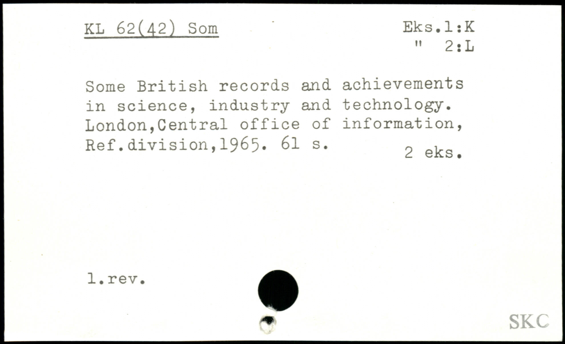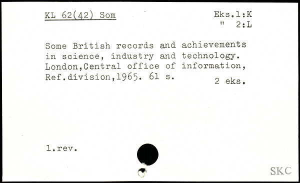 Some British records and achievements in science, industry and technology. London,Central office of information, Ref.division,1965.