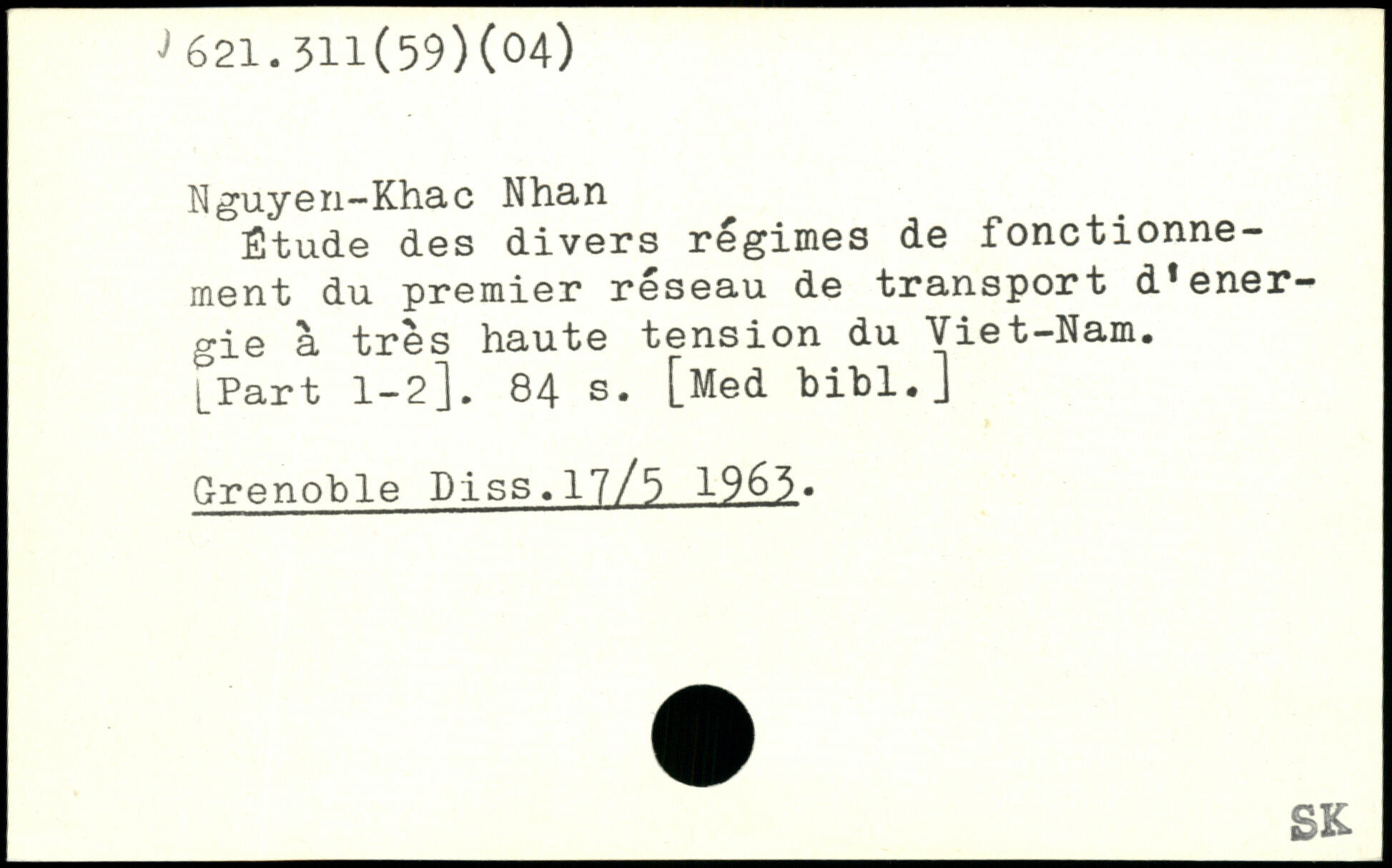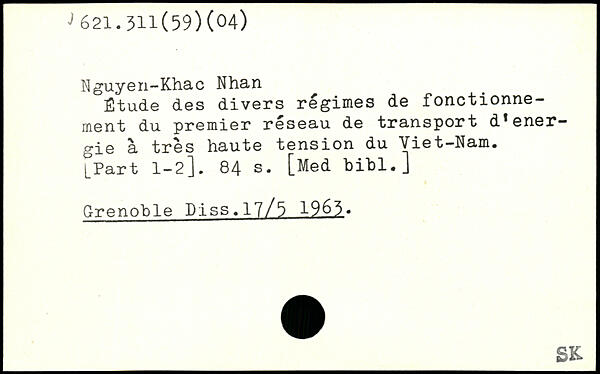 Nguyen-Khac Nhari Étude des divers régimes de fonctionnement du premier reseau de transport d.ener-gie à très haute tension du Viêt-Nam.