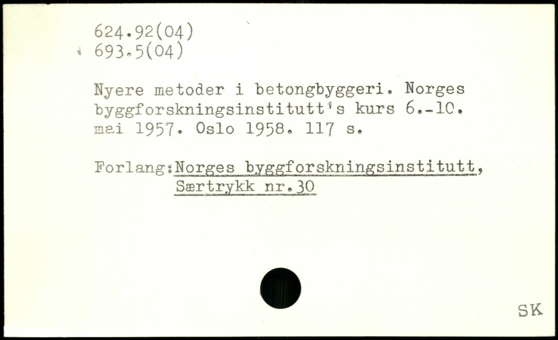 Nyere metoder i betongbyggeri. Norges byggforskningsinstitutt’s kurs 6.-10. mai 1957. Oslo 1958.