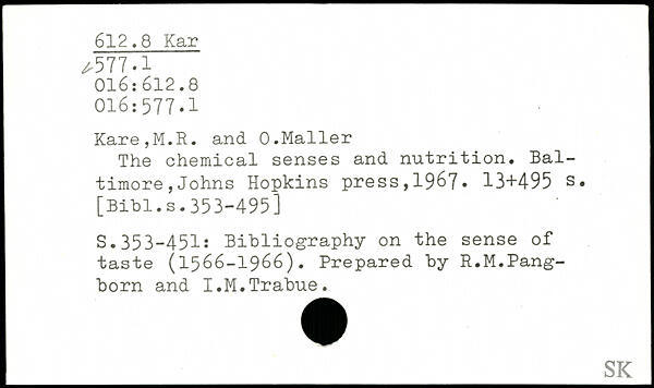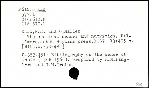 Kare,M.R. and 0.Mailer The chemical senses and nutrition.