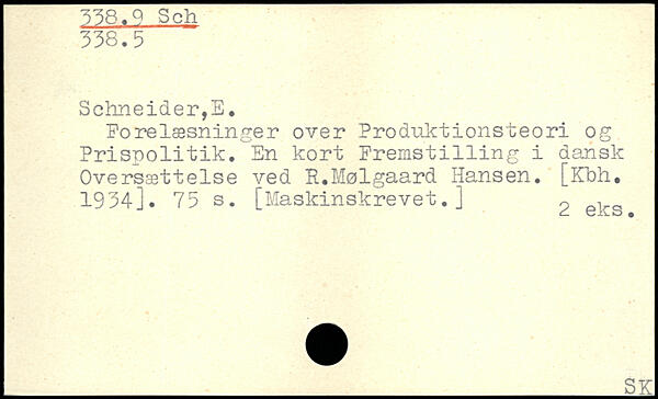 Forelæsninger over Produktionsteori og Prispolitik. En kort Fremst1111ng i dansk Oversættelse ved R.Mølgaard Hansen. [Kbh. 1934].