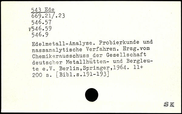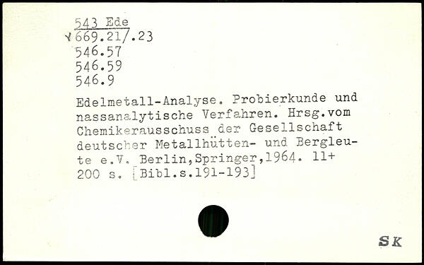 Edelmetall-Analyse. Probierkunde und nassanalytische Verfahren. Hrsg.vom Chemikerausschuss^der Gesellschaft deutscher Metallhütten- und Bergleute e.V