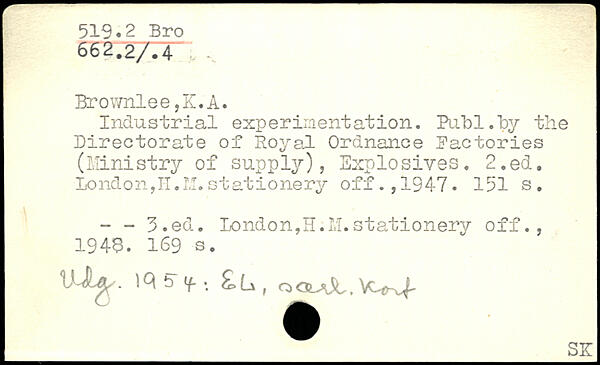Industrial experimentation. Piibl.by the Directorate of Royal Ordnance factories (Ministry of supply), Explosives.